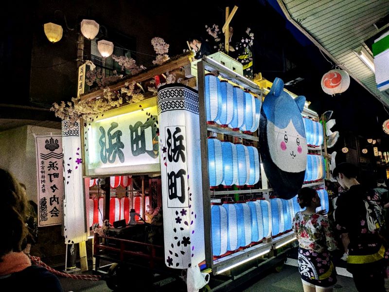 キャラクター山車も根強い人気。浜町はハチワレちゃん。